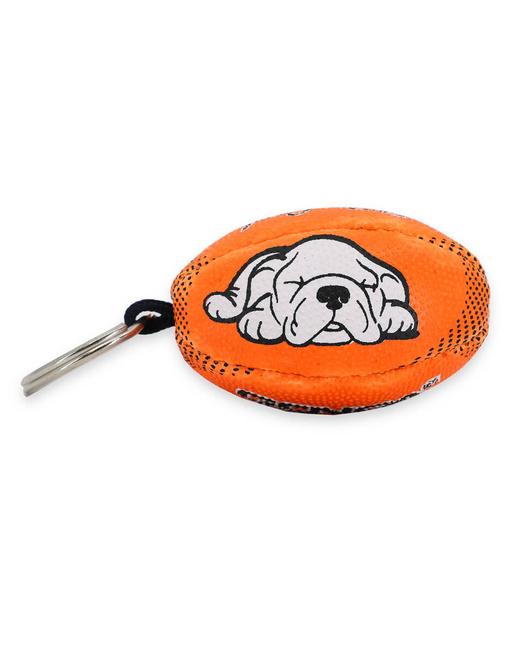 Breloczek do kluczy imitujący prawdziwą piłkę do rugby.